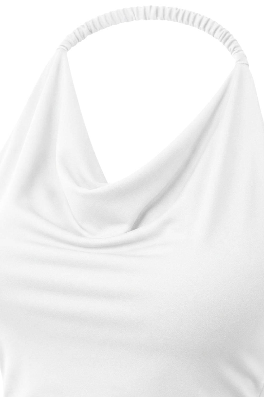 Top corto de cuello halter fluido, sin mangas, fit ajustado y escote en espalda.