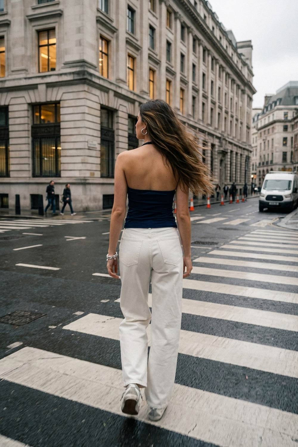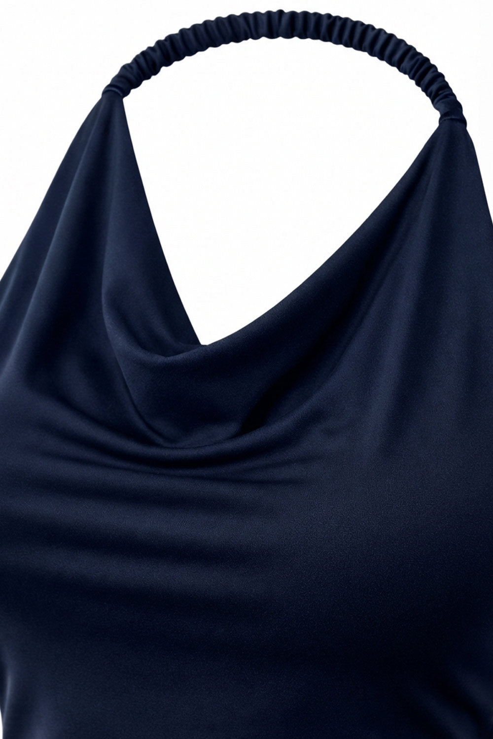 Top corto de cuello halter fluido, sin mangas, fit ajustado y escote en espalda.