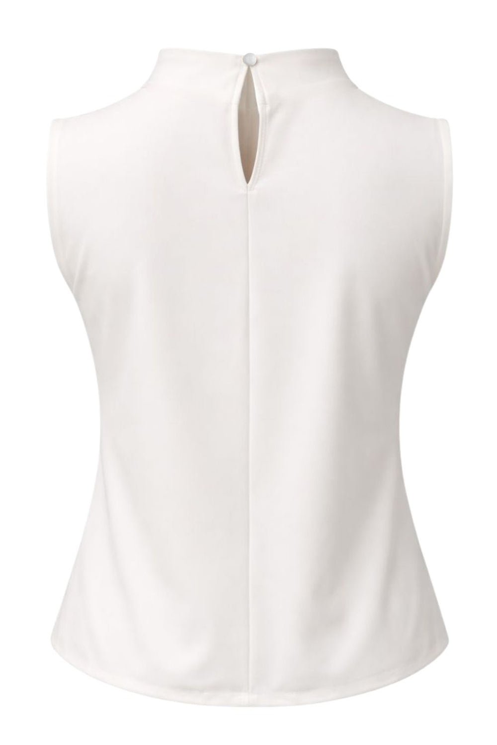 Blusa de fit recto, sin mangas y cuello alto con detalles plisados en hombros. Cierre posterior botón y ojal.