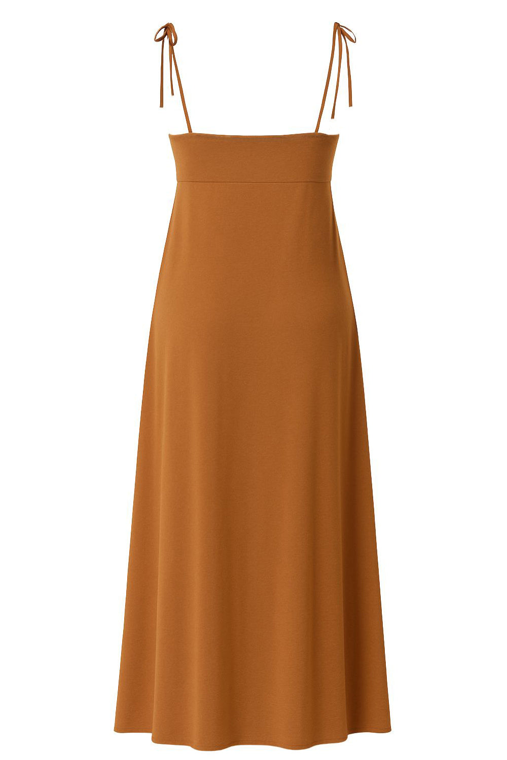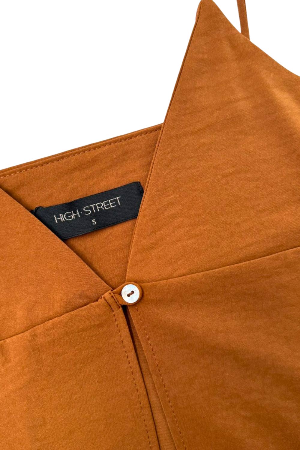 Blusa larga de fit fluido, tirantes delgados con nudo ajustable, escote v con cortes, abertura frontal y cierre con botón.