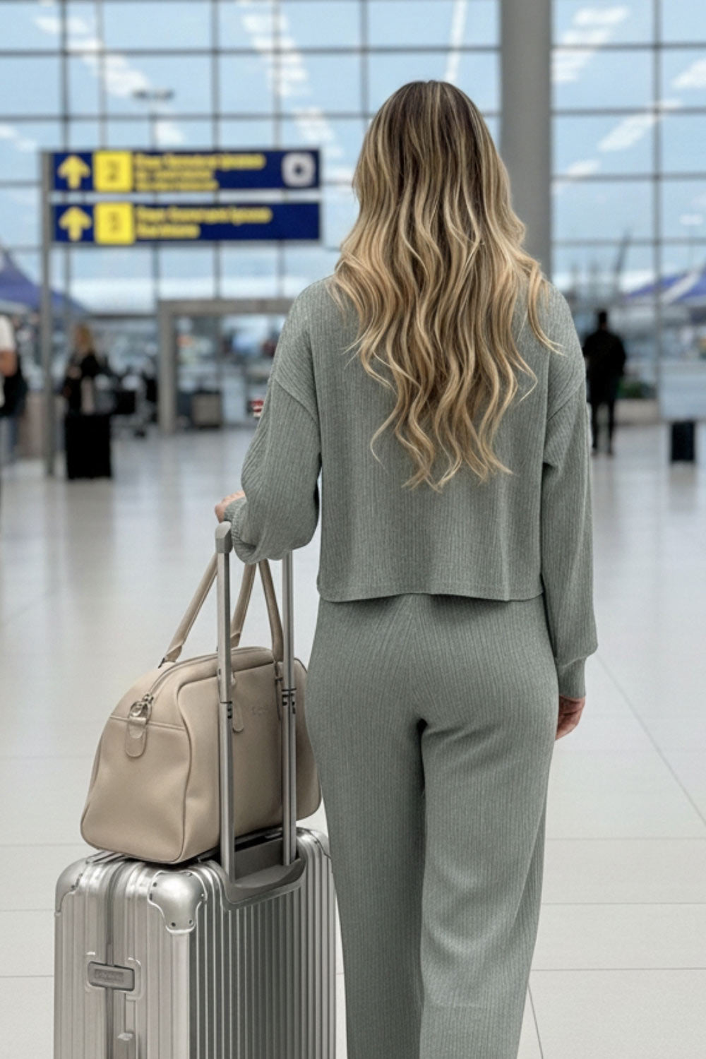 Top de manga larga con hombro caído, cuello mock seguido, fit recto y textura en tejido.