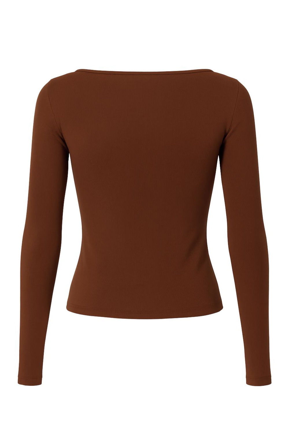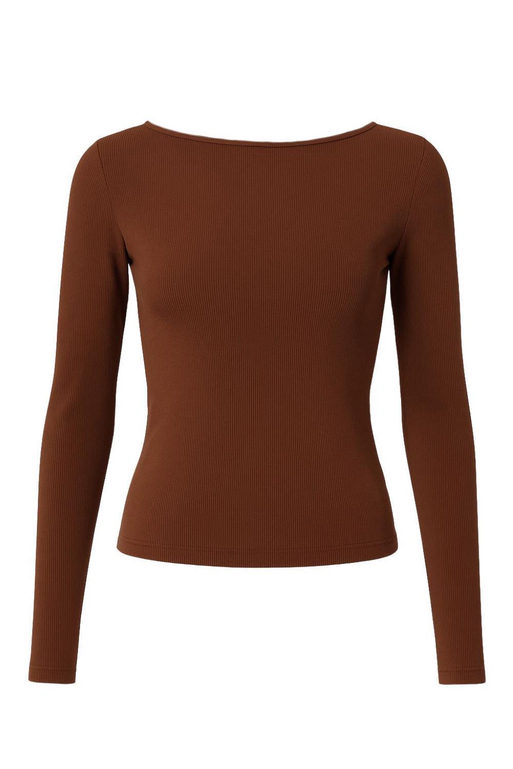 Top básico canalé de fit ajustado, cuello barco y manga larga.