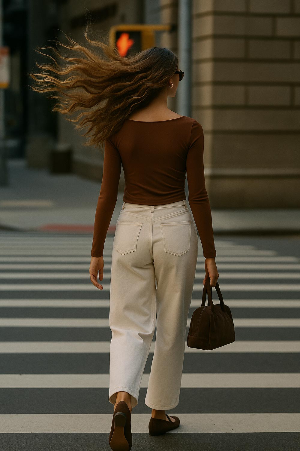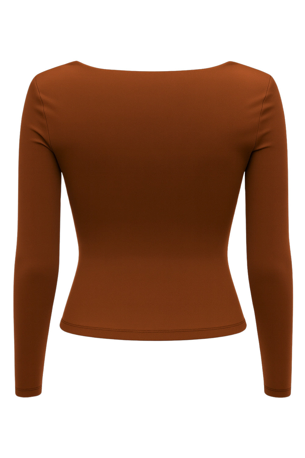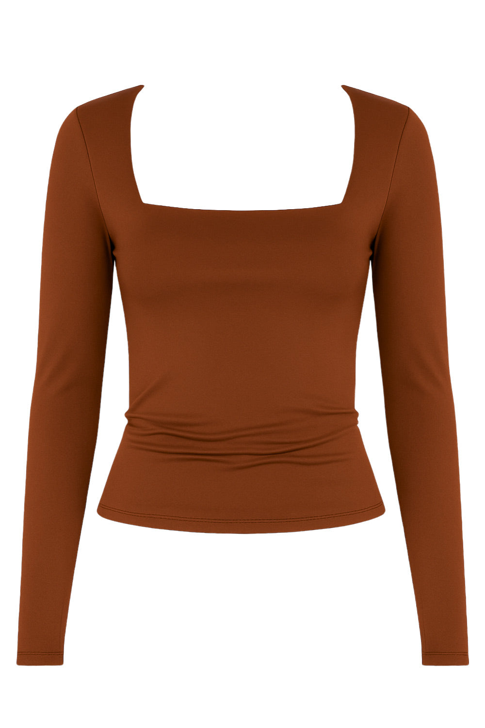 Top básico de escote cuadrado, manga larga y fit ajustado.