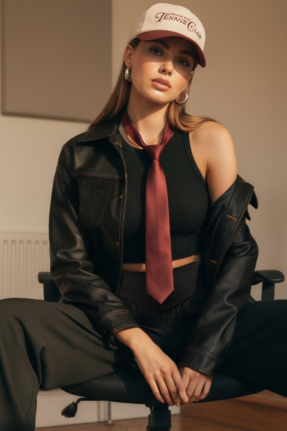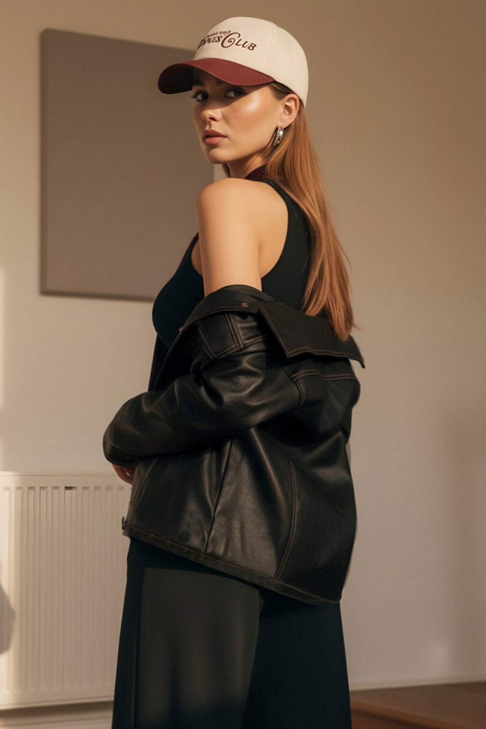 Chamarra efecto piel pespuntes