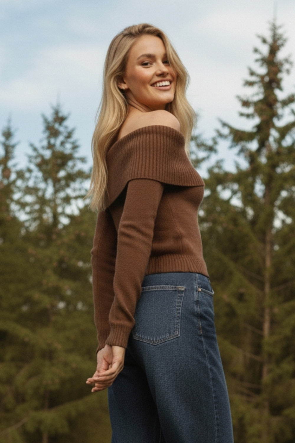 Jersey canalé de hombros descubiertos