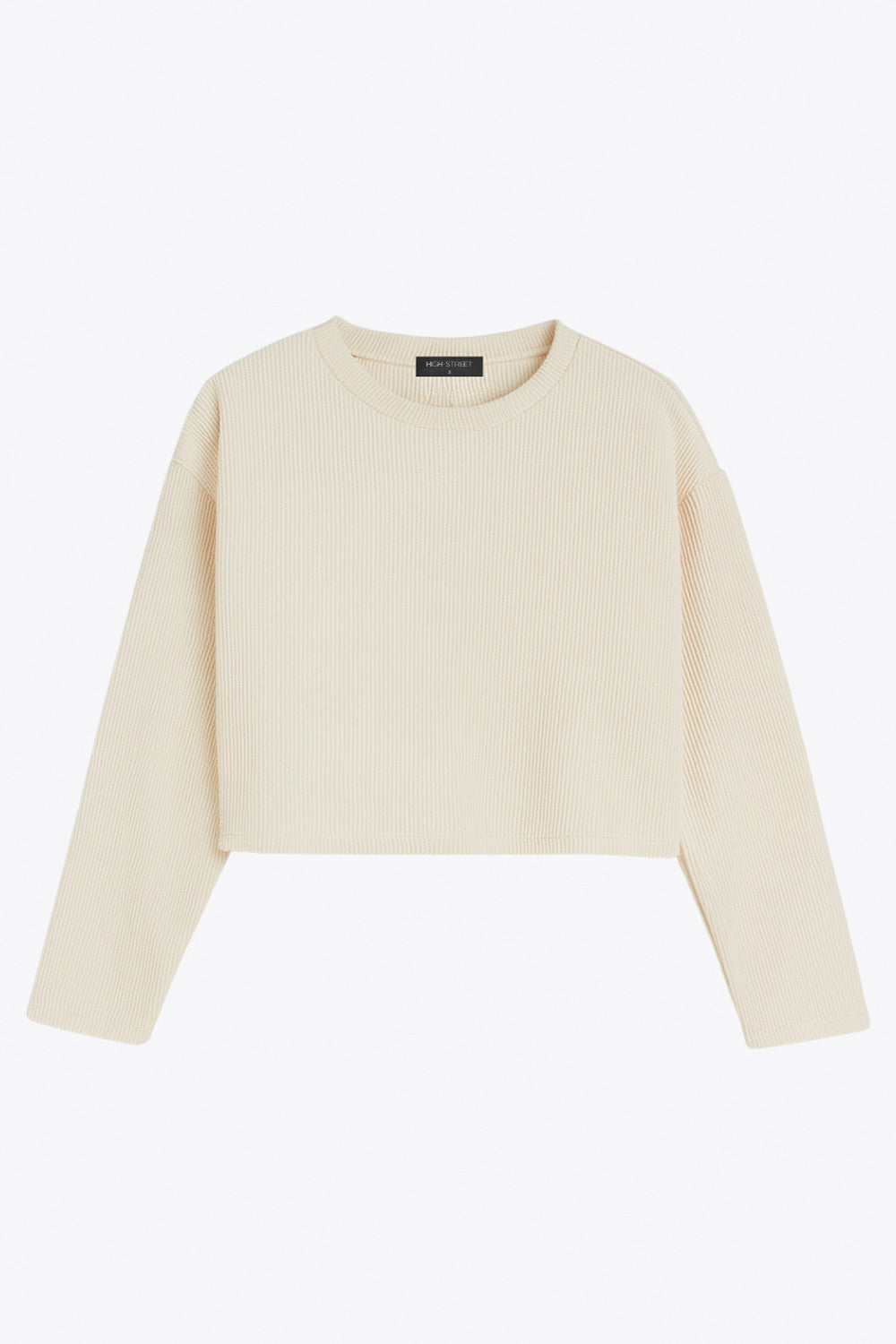 Jersey básico de punto, fit recto, cuello redondo y manga larga de hombro caído.