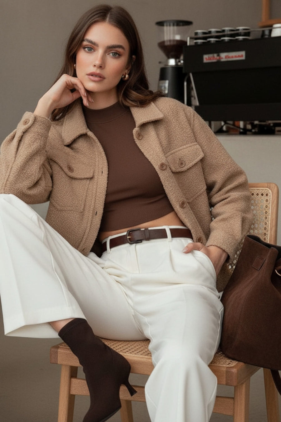 Chamarra corta de borreguillo con bolsillos