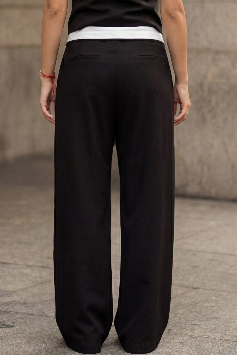 Pantalón wide leg con pinzas pretina contraste