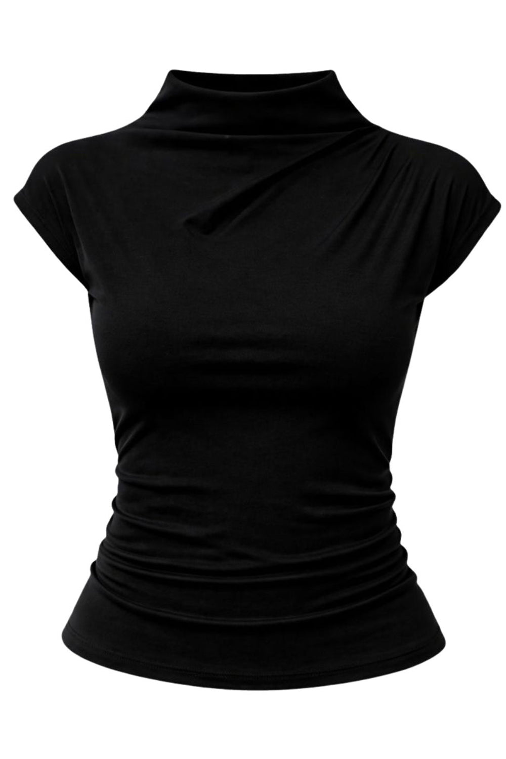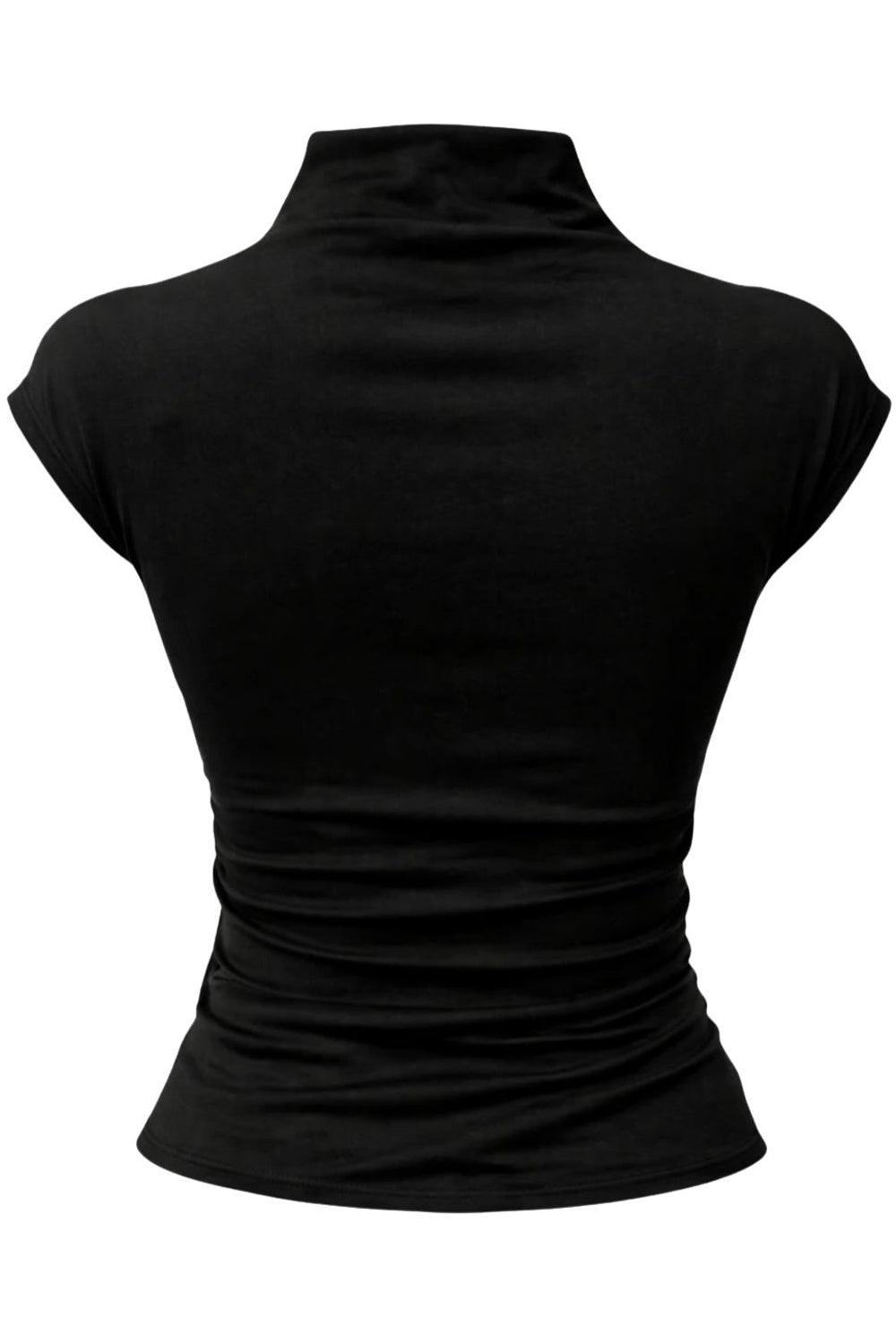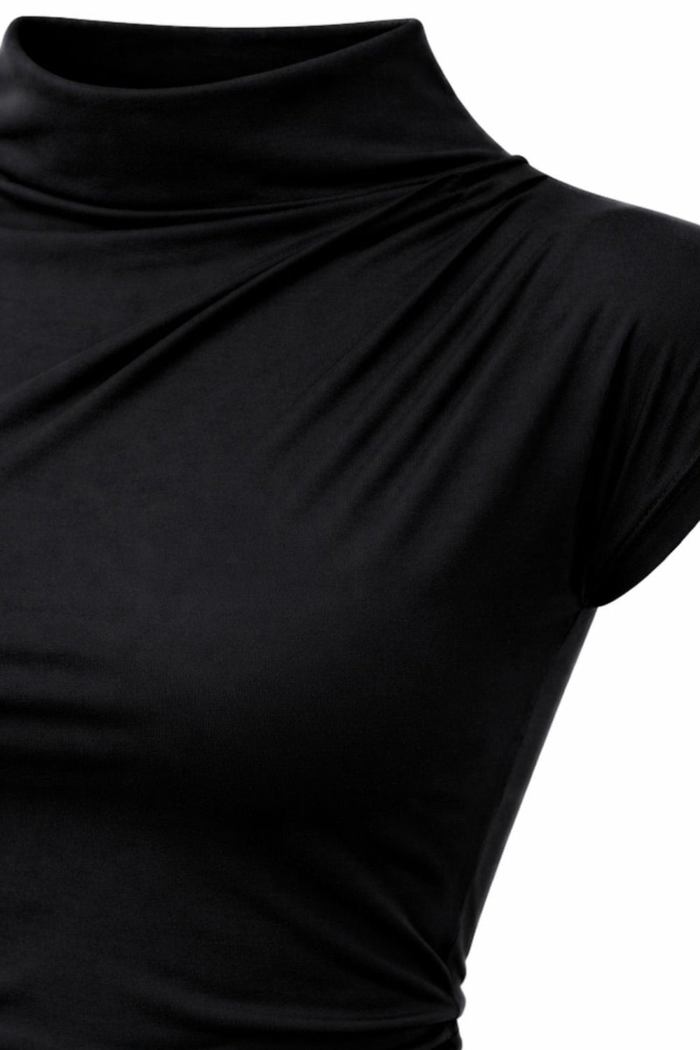 Top corto de cuello mock seguido, fit ajustado y manga corta seguida.